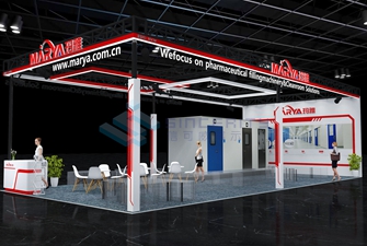 本次案例賞析的是瑪雅公司在大型展覽會搭建展位。展位面積達到105平方米,采用三面開口的設計,以簡約而不失大氣的風格吸引了眾多參觀者的目光。在此,將從設計理念、空間布局、、材料選擇、照明設計等方面進行詳細解析,并結合實際效果評估,為未來的展臺搭建設計提供參考和借鑒。