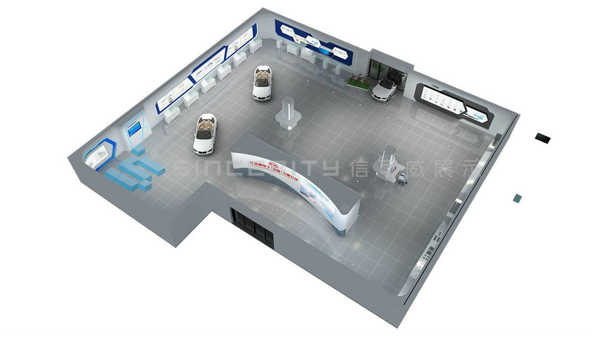 比亞迪500平米展廳效果圖。
